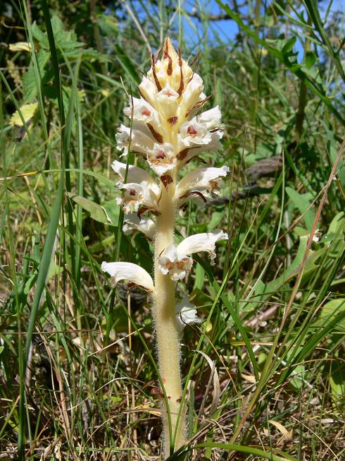 v.l.n.r.: bitterkruidbremraap (orobanche picridis), dennenorchis (goodyera repens) en kuifhyacint (muscari comosum).