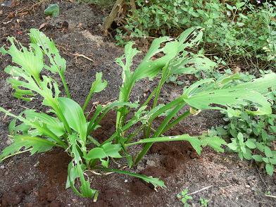 Zo ziet de hosta in mijn tuintje eruit. De schurken die dat op hun geweten hadden, waren echter onvindbaar. Tot het einde van de hittegolf zich met een donderslag aankondigde en de regen met bakken uit de lucht kwam. De een na de ander stak zijn voelsprieten uit en kwam vanonder de lavendel en achteruit de klimop.