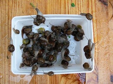 Blij dat ik ze eindelijk te grazen kon nemen, gooide ik ze met een boog in de groenbak, dat zou ze leren. Maar 's nachts kwamen er kleine stemmetjes uit de container. Uit wroeging heb ik ze de volgende dag losgelaten in het park. Honderden van hun soort zijn zo gedeporteerd en de planten in mijn tuin halen opgelucht adem.